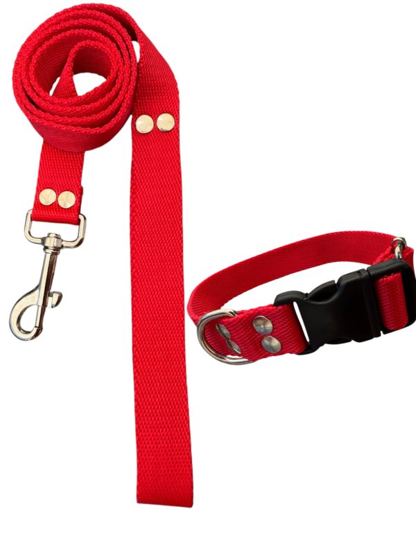 El collar cuenta con un sistema de ajuste firme y cómodo, mientras que la correa posee herrajes resistentes que aseguran un paseo seguro en todo momento.