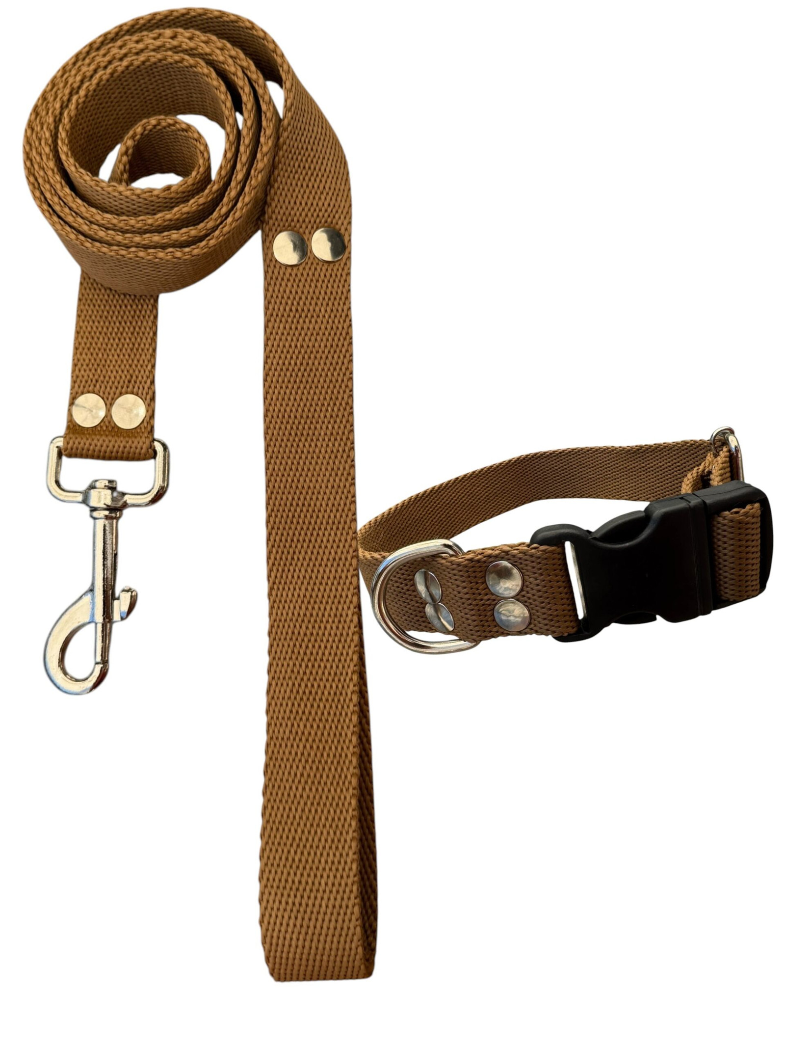 Este conjunto de collar y correa para mascotas está confeccionado con cinta lisa reforzada, ofreciendo alta resistencia, durabilidad y comodidad en el uso diario.