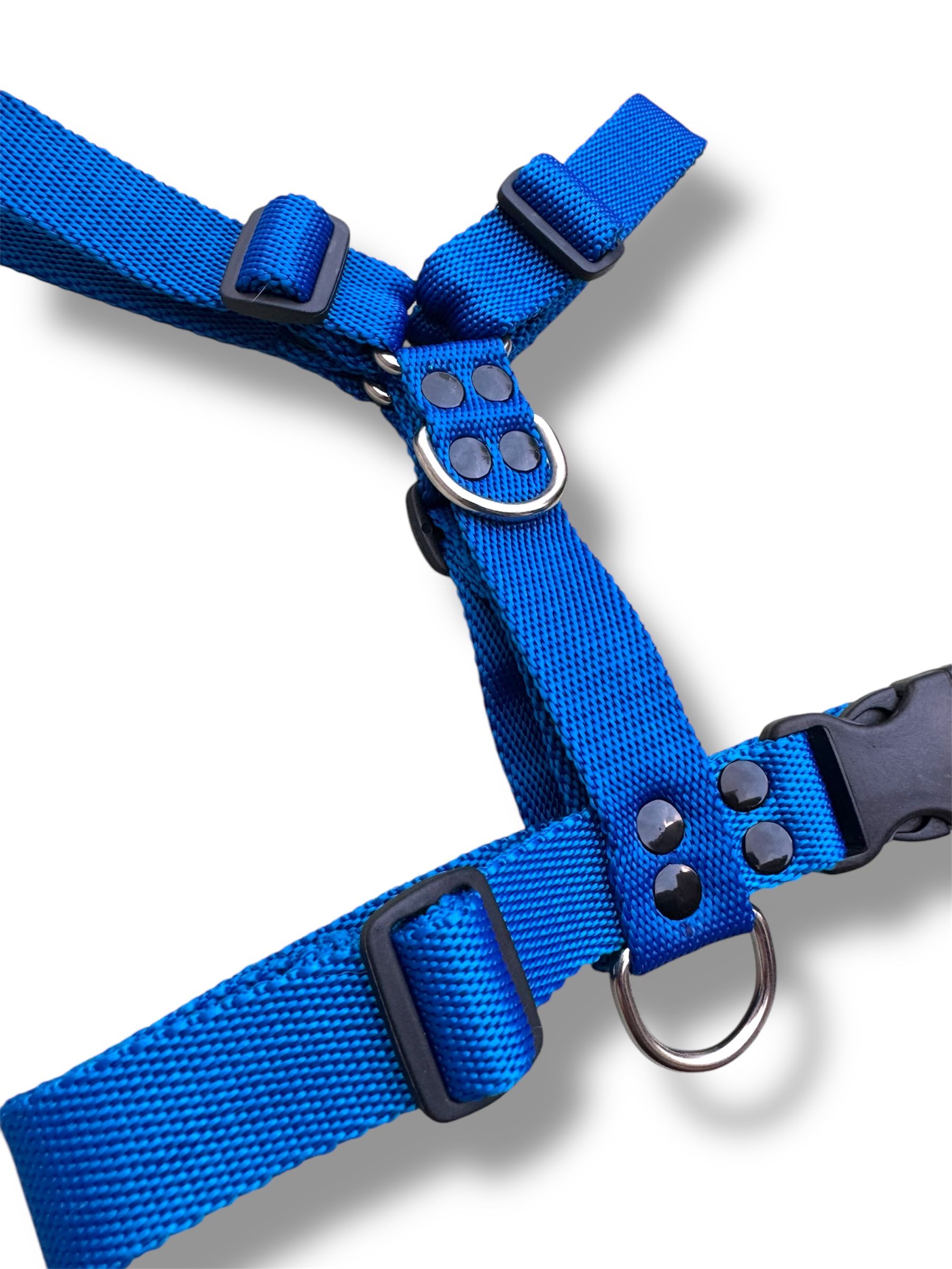 Su diseño en H permite que la presión se distribuya de manera uniforme sobre el pecho y el torso, evitando incomodidades y brindando mayor control durante el paseo.