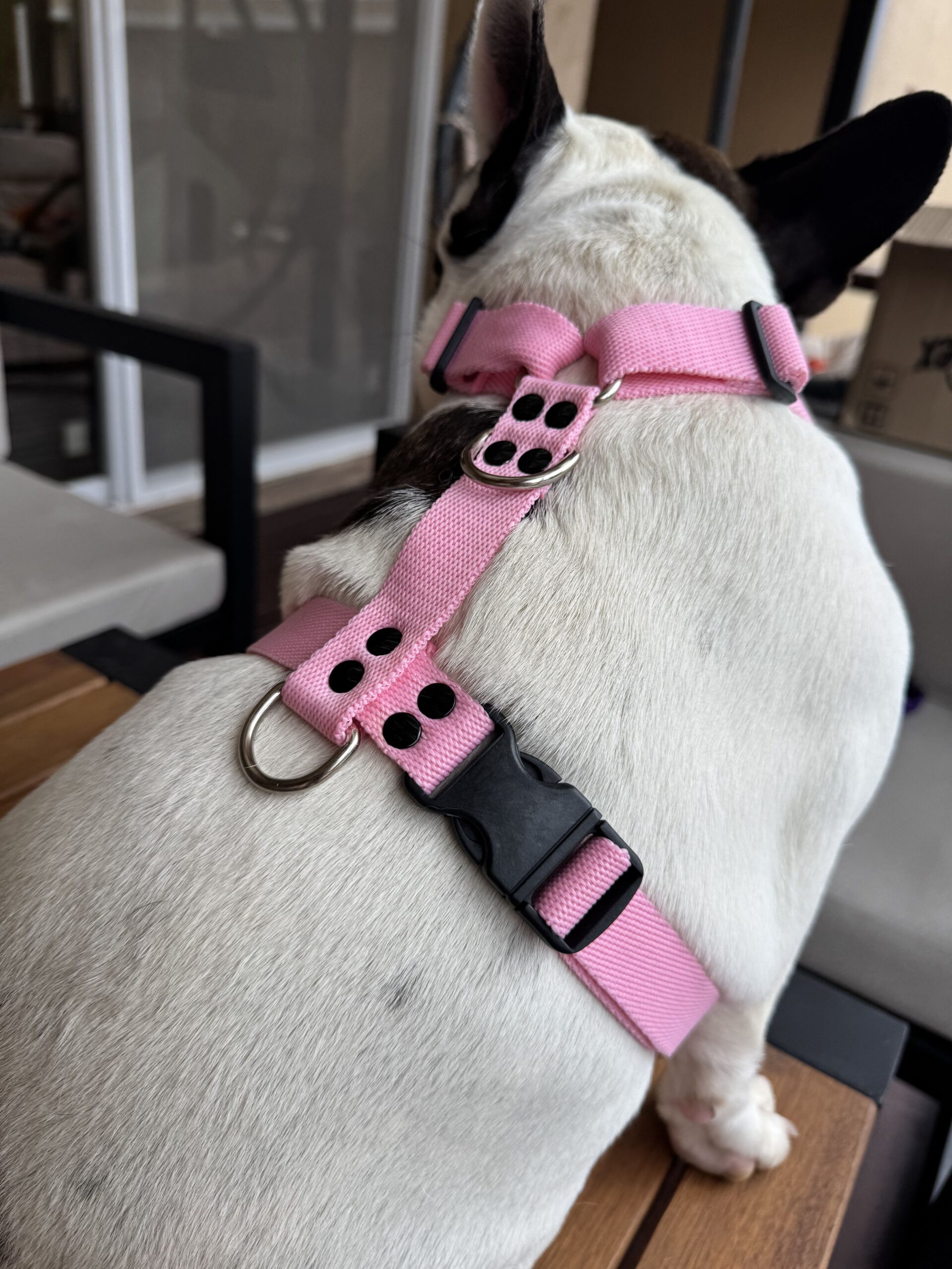 Su diseño en H permite que la presión se distribuya de manera uniforme sobre el pecho y el torso, evitando incomodidades y brindando mayor control durante el paseo.